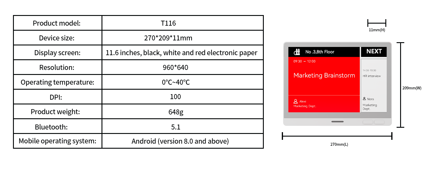 TIBURN e-ink smart door sign 11.6 inches