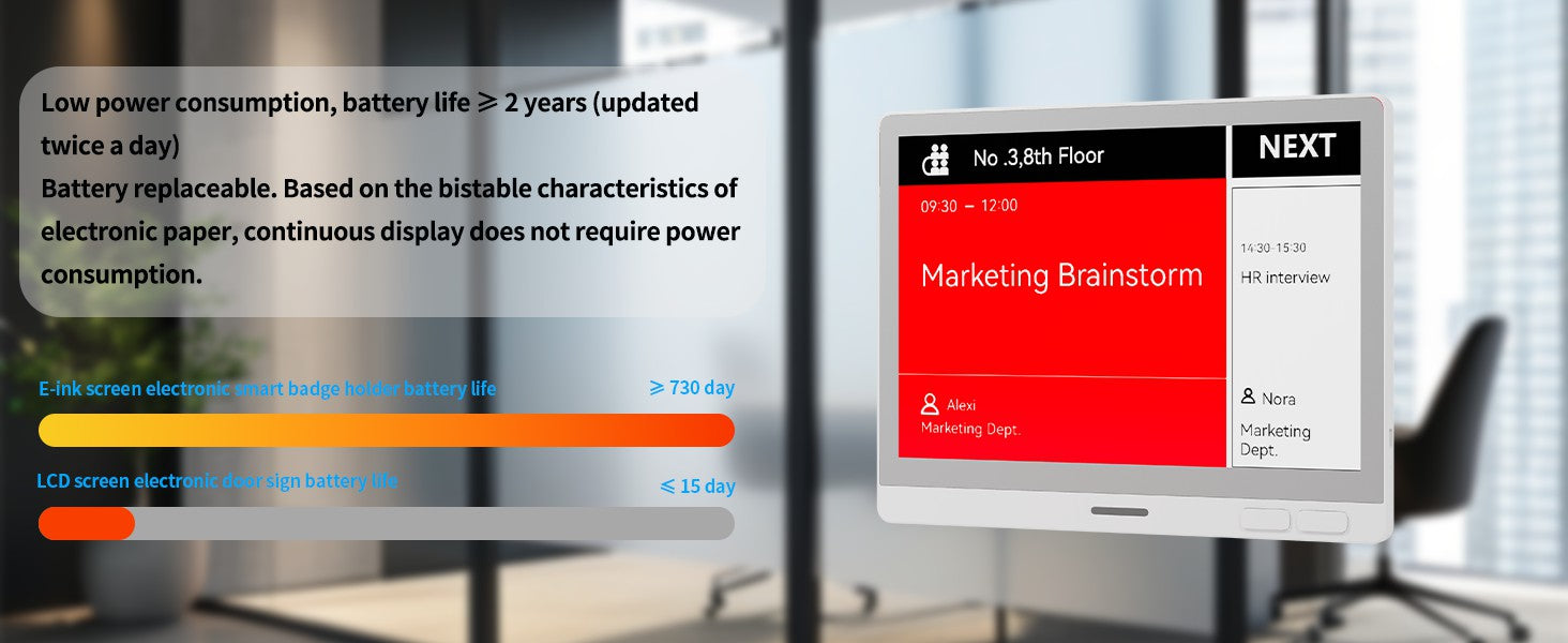 - 【Energy Saving】The ink screen uses ink particles, and no power consumption is required to maintain the display state after the information is displayed, thereby saving energy.