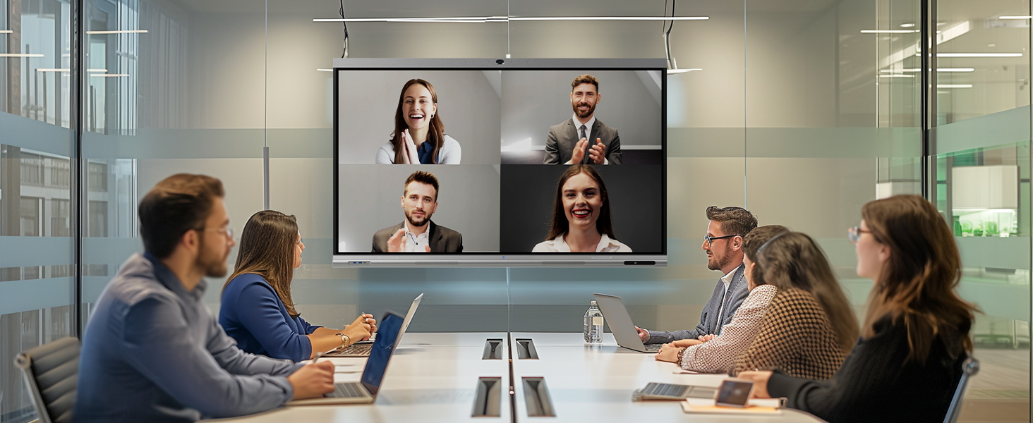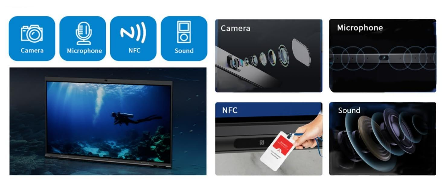 - 【Real-time Remote Video Conferencing】The electronic whiteboard has a built-in professional conference-level auto framing AI camera and an 8-meter sound pickup matrix. The sound source positioning microphone can complete video conferencing excellently. Perfectly compatible with Zoom, Google Meet, Microsoft Teams, Webex and other popular 3rd party video conferencing. Whether it’s a team brainstorming session or a virtual meeting, it’s easy to handle.