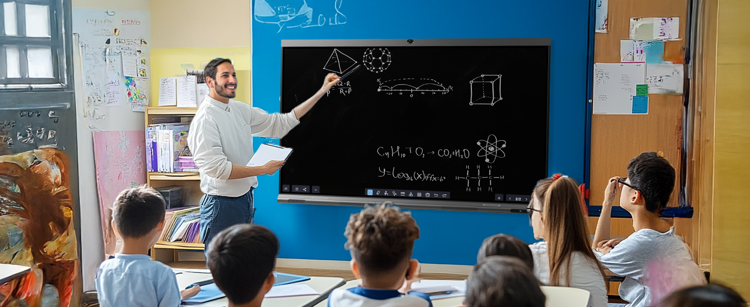 - 【Powerful Whiteboard】The intelligent interactive whiteboard's 8 millisecond response time ensures a natural pen-to-paper writing experience, no delay in writing and drawing, and writing accuracy within 2 mm. The matching stylus can use dual pen tip mode, supporting different stroke color and thickness, making the use experience more intelligent.